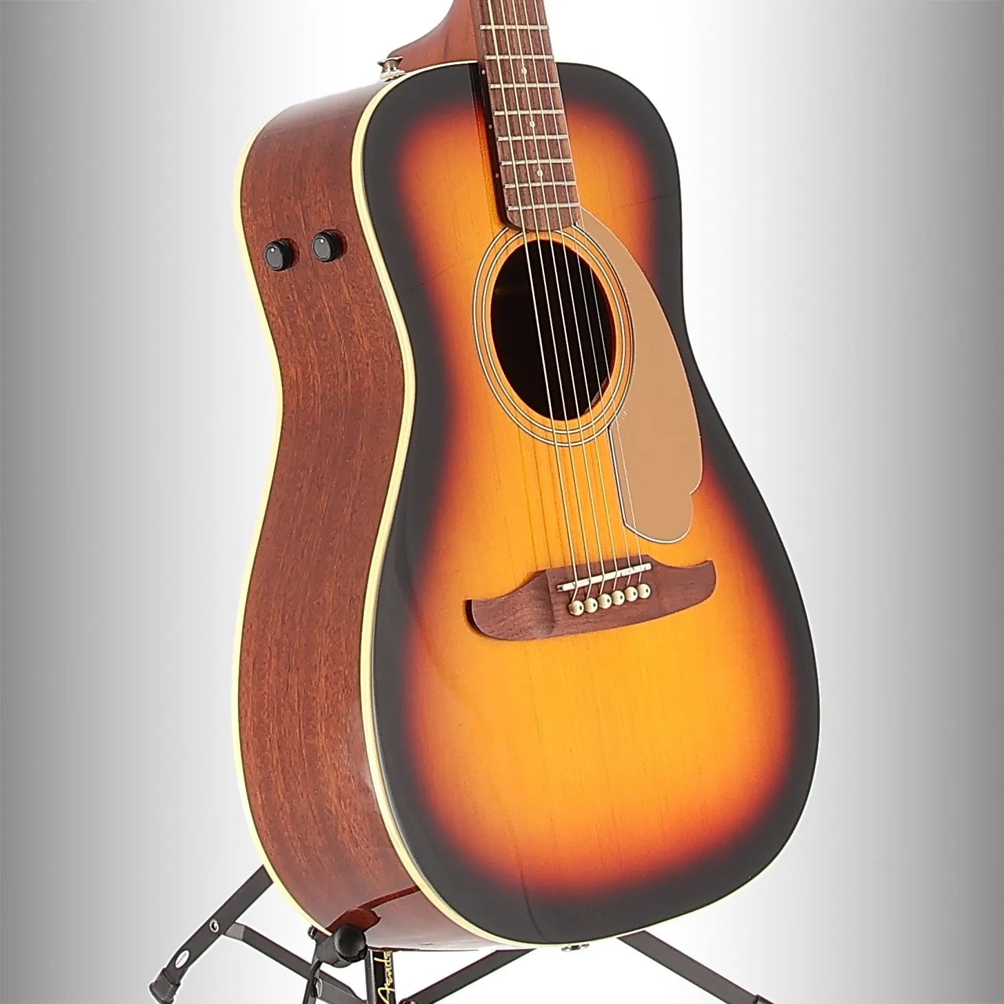 Inspired by the iconic designs of Fender electric guitars, California Player acoustics evoke the west coast spirit of adventure and freedom, inviting musicians to explore their individual creativity and disrupt the status quo. Crafted with an X-braced solid spruce top and sapele back and sides, the compact parlor-sized body of the Malibu Player produces a sweet, articulate voice that encourages players to reach for new chords and melodies. The nato neck is designed with an easy-to-play slim "C"-shaped profile, a short 24" scale length, and a tilt-back 6-in-line headstock for a distinctive look born from Fender's electric guitar DNA. Other notable details include vintage-style tuning machines for smooth, accurate tuning, a GraphTech NuBone nut and saddle for detailed harmonic character. With elegantly integrated controls for a sleek, modern look, the onboard Fishman Flex preamp system allows faithful reproduction of the guitar's natural sound when plugged into an amplifier or recording device. Bold, eye-catching and unique, California Series instruments make no compromises, balancing effortless playability, superior sound, and standout style for those who aspire to play something different.